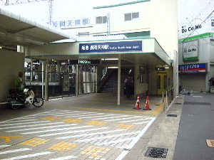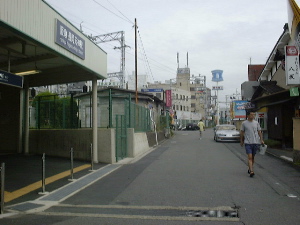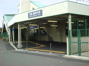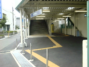 | こちらは東口。コンビニ(ローソン)や喫茶店などがそばにある。西口に比べて人通りは少なく静かである。こちらからもエレベーターで2階の改札口へ行ける。 | ||||||||||||||||||||||||||||