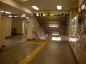 | 改札から東口エレベーター乗降口を見る。少しわかりにくいが写真左奥がエレベーター。 | ||||||||||||||||||||||||||||
