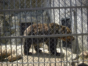 ヒグマは檻の中を行ったり来たり。こんなのに山で襲われたらやっぱり恐〜い。